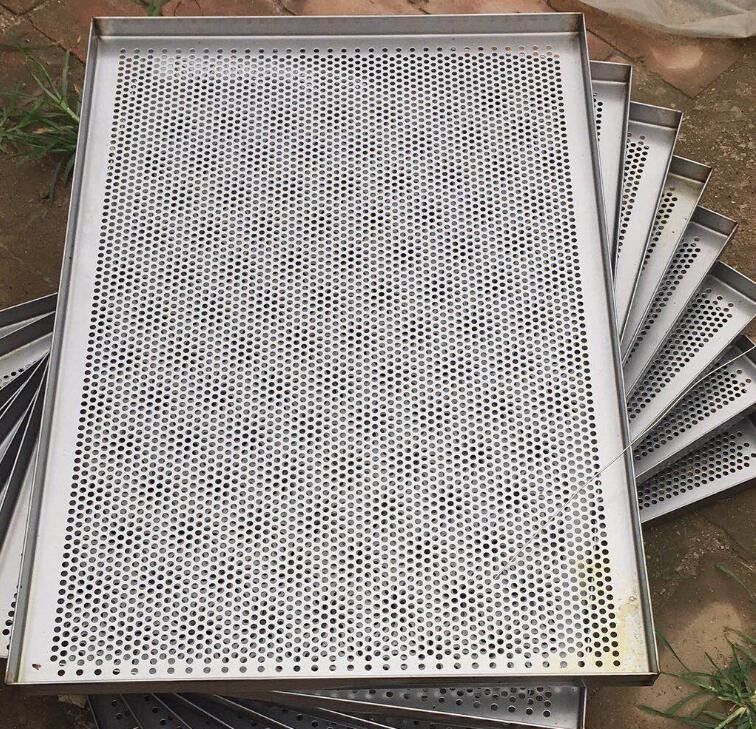 Le plateau de cuisson perforé en métal, le plateau de cuisson en treillis métalliques pour transformation des aliments est facile à nettoyer, résistant à l'huile, résistant à la corrosion que le plateau en fer ou en acier 201.Donc ce plateau peut entrer en contact avec la nourriture..